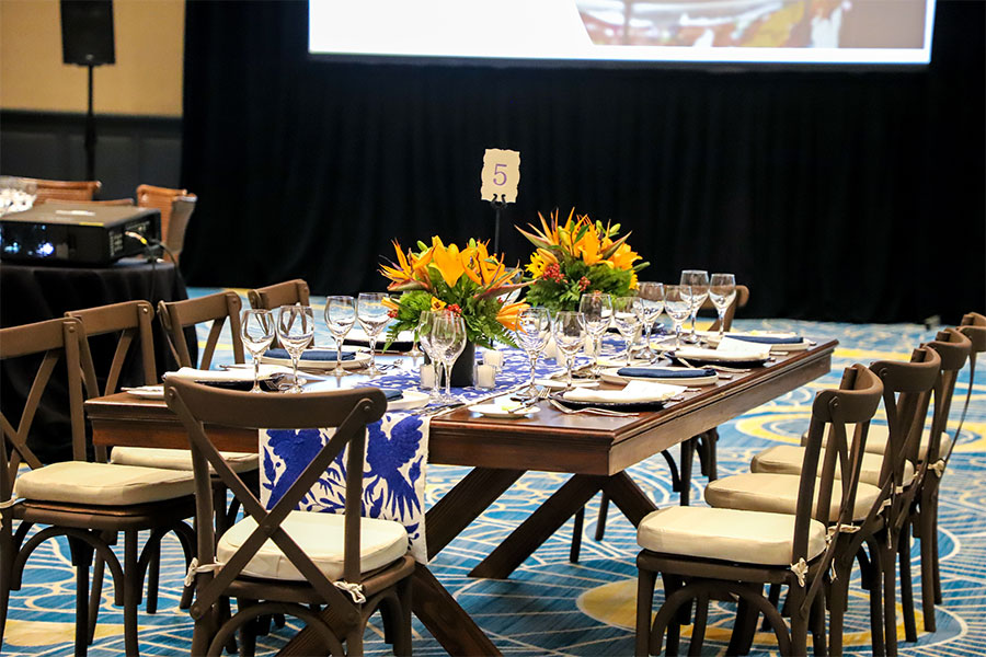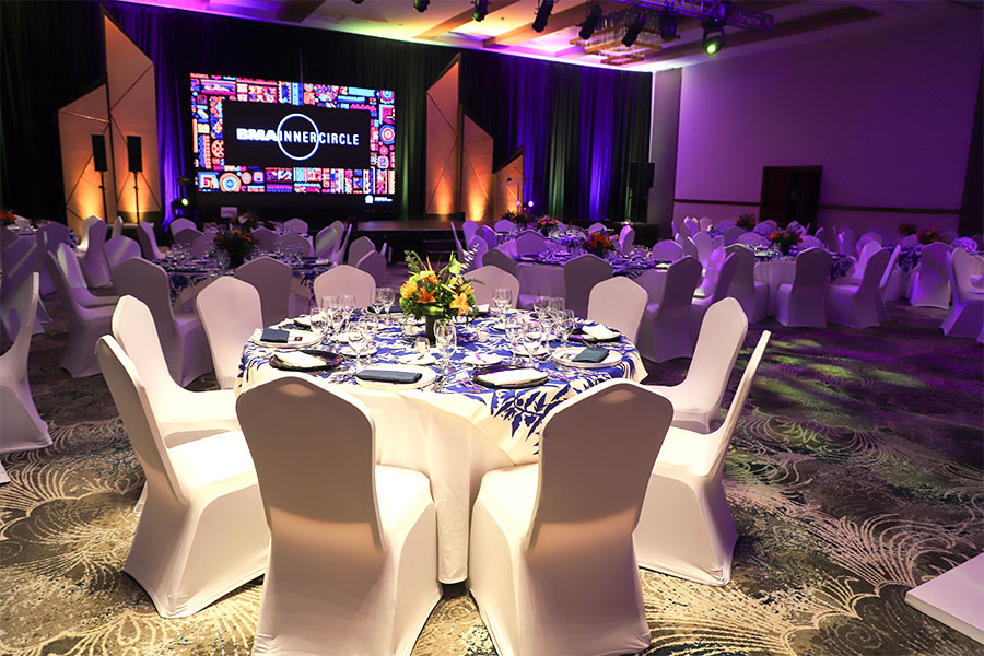 Eventos empresariales en Los Cabos con mobiliario exclusivo y producción audiovisual.